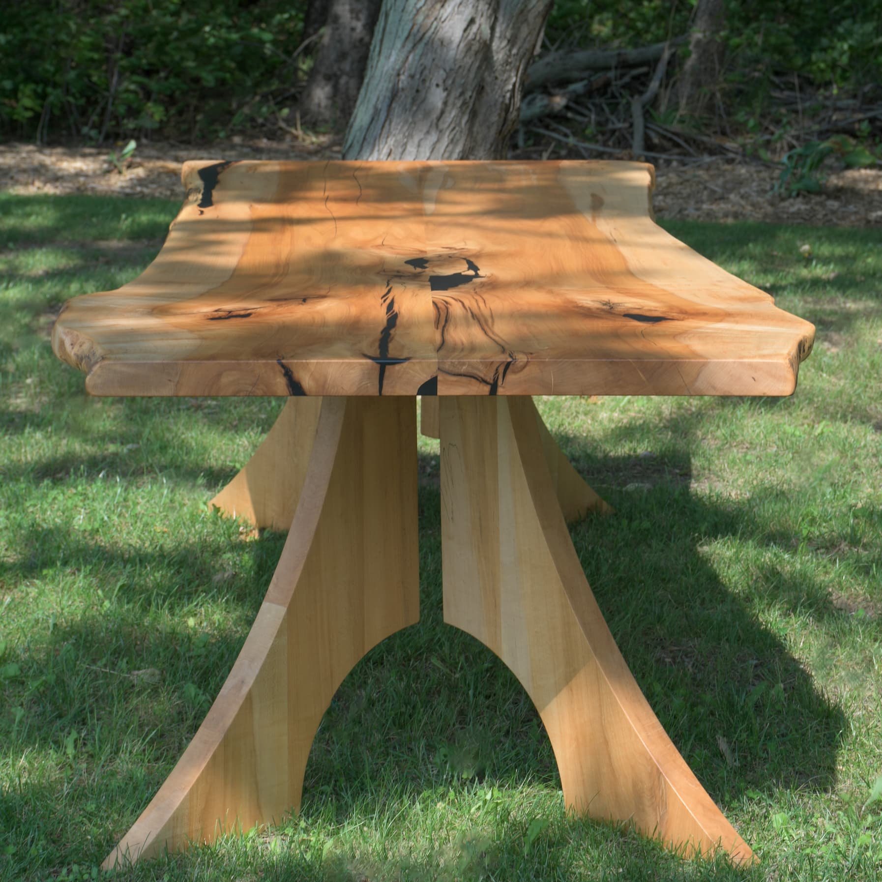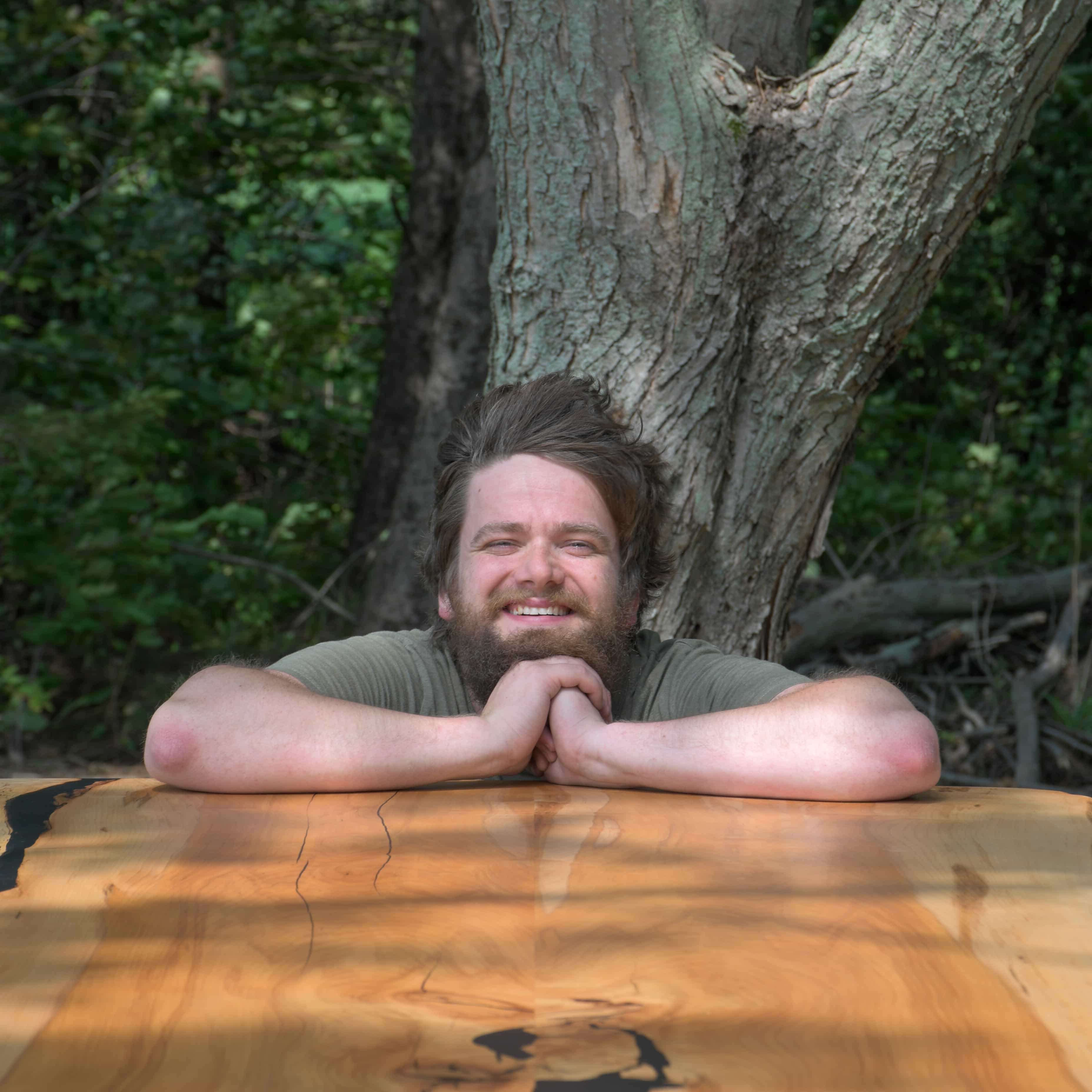 This shouldn’t be a surprise, but I really like trees. I’m not sure that’s why I got into working with wood. That one might be my grandfather's fault, but I have always loved trees. To climb, to look at, to sit in the shade of, trees are great. I love our bookmatch tables, the Algonquin collection, because they’re so much tree. Every table we make is solid hardwood, but these are special. The wood is all from the same tree, and it’s real. You can see the life the tree lived, you can see the imperfections in it. The nature comes along in the table. That’s why I have a bookmatch table.
